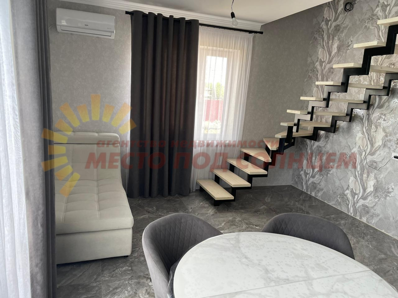 На первом этаже расположены: кухня23,7 м2 + 1комната 23,7 м2.