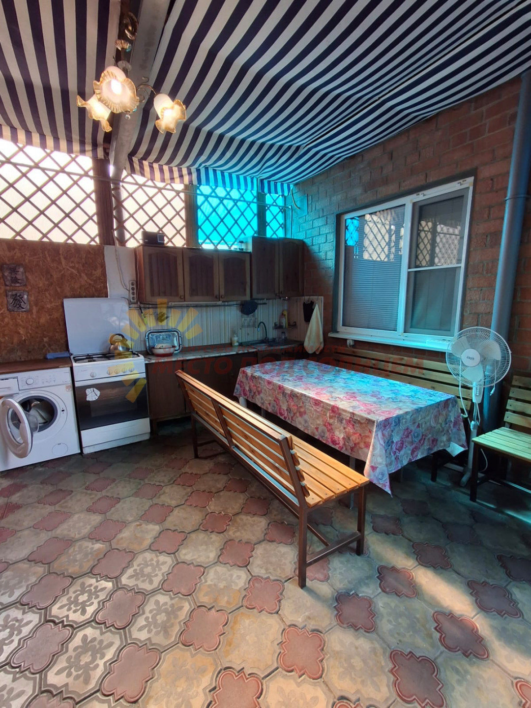 Еcть летняя куxня под навесом.