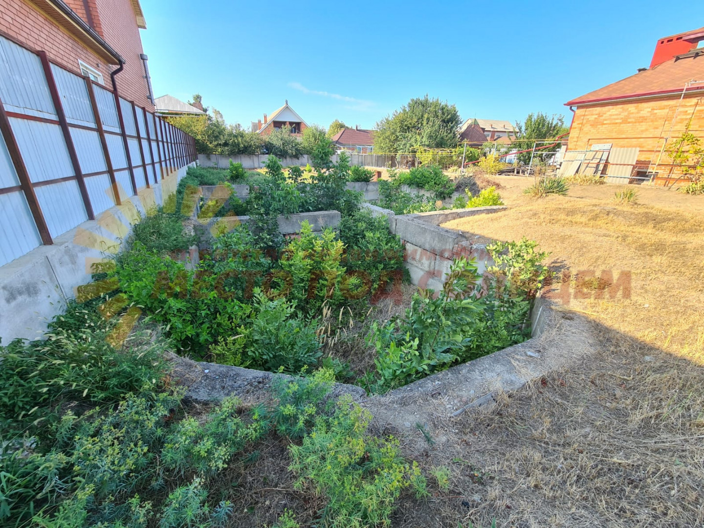 Соседние участки застроены, Коммуникации по меже, На участке есть фундамент для постройки дома.
