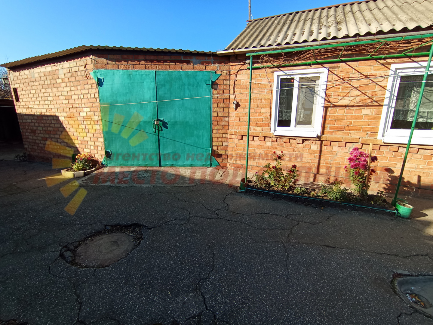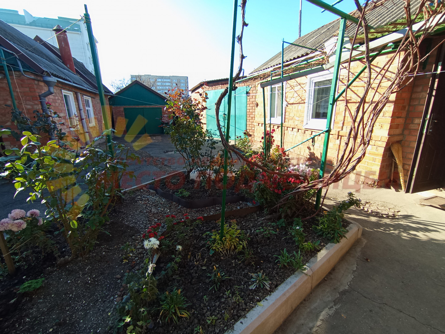 Территория вокруг дома ухожена: во дворе находятся цветущие клумбы, создающие уютную атмосферу. Дополняет картину большой гараж с вместительным погребом, а также хозяйственные постройки, которые могут служить для хранения садового инвентаря.