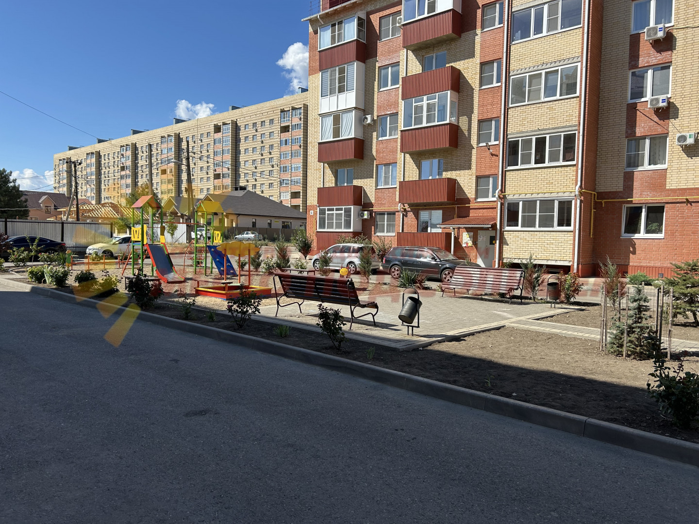 Тихий спокойный двор, комфортная близость инфраструктуры.